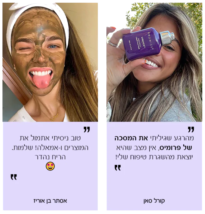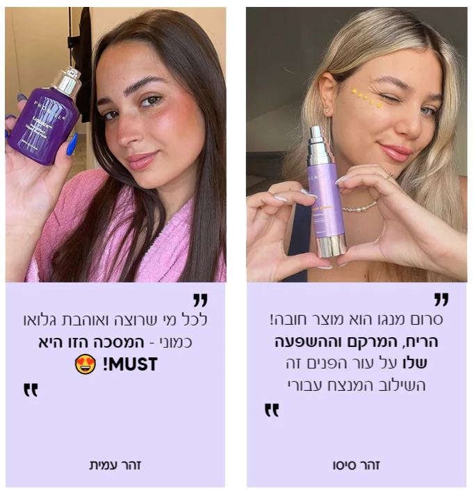 במוצרים שלנו תמצאי רכיבי פלא מן הטבע והמדבר כגון שמן חוחובה, עלי צבר ובוץ ממעמקי ים המלח. בשילוב עם פורמולות וטכנולוגיות טיפוח חדשניות, אלו מזינים את עורך ומאפשרים תוצאות מוכחות ועור רך ומושלם, כמו שתמיד חלמת.