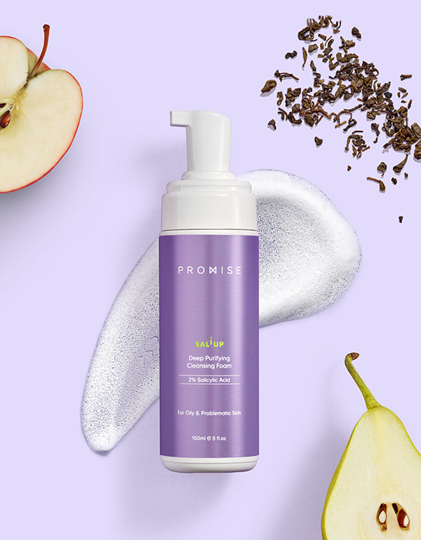 קצף ניקוי SALI UP עם 2% חומצה סליצילית, משחרר נקבוביות חסומות ומסייע בהפחתת פצעונים וראשים שחורים. |